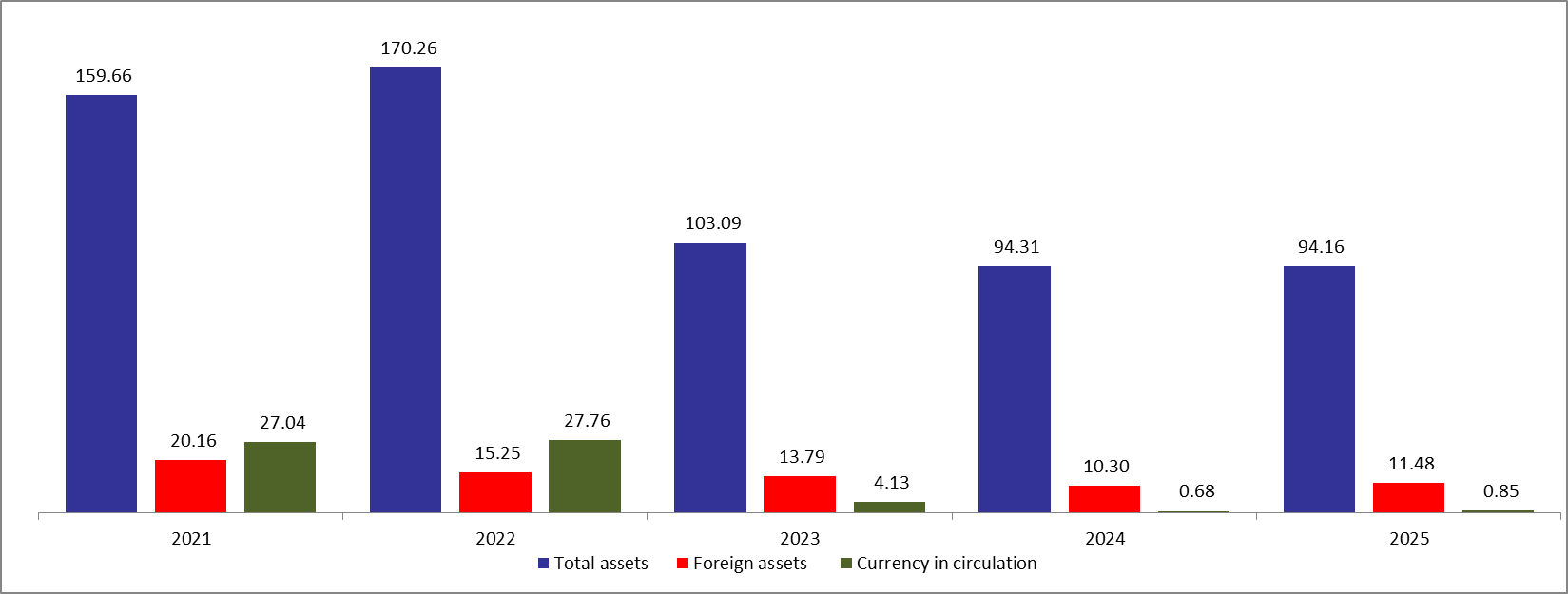BDL Total Assets, Foreign Reserve Assets and Currency in Circulation by End-July 2025 ($B):