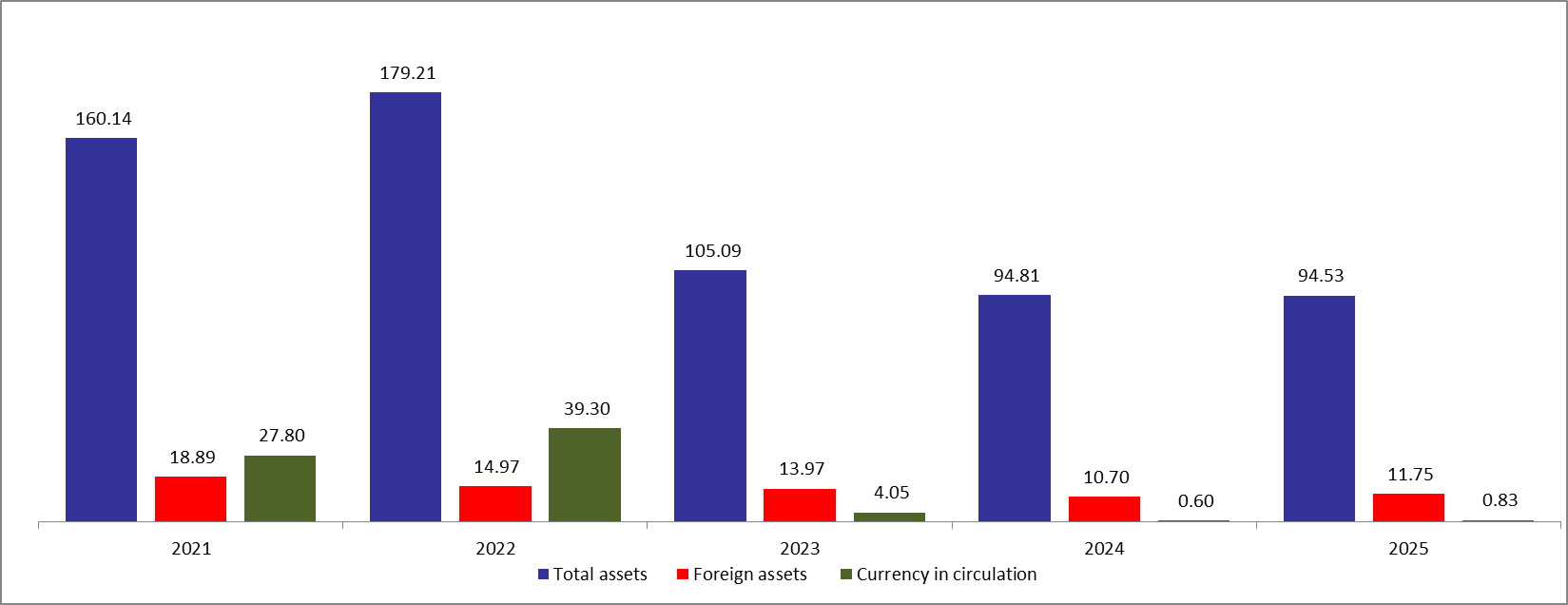 N.B.: The foreign assets figures of 2024 and 2025 in the above graph are net of Lebanese Eurobonds.