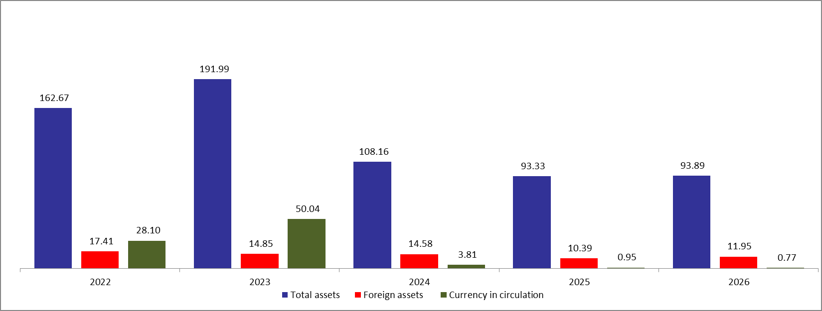 BDL Total Assets, Foreign Reserve Assets and Currency in Circulation by End-January 2026 ($B):