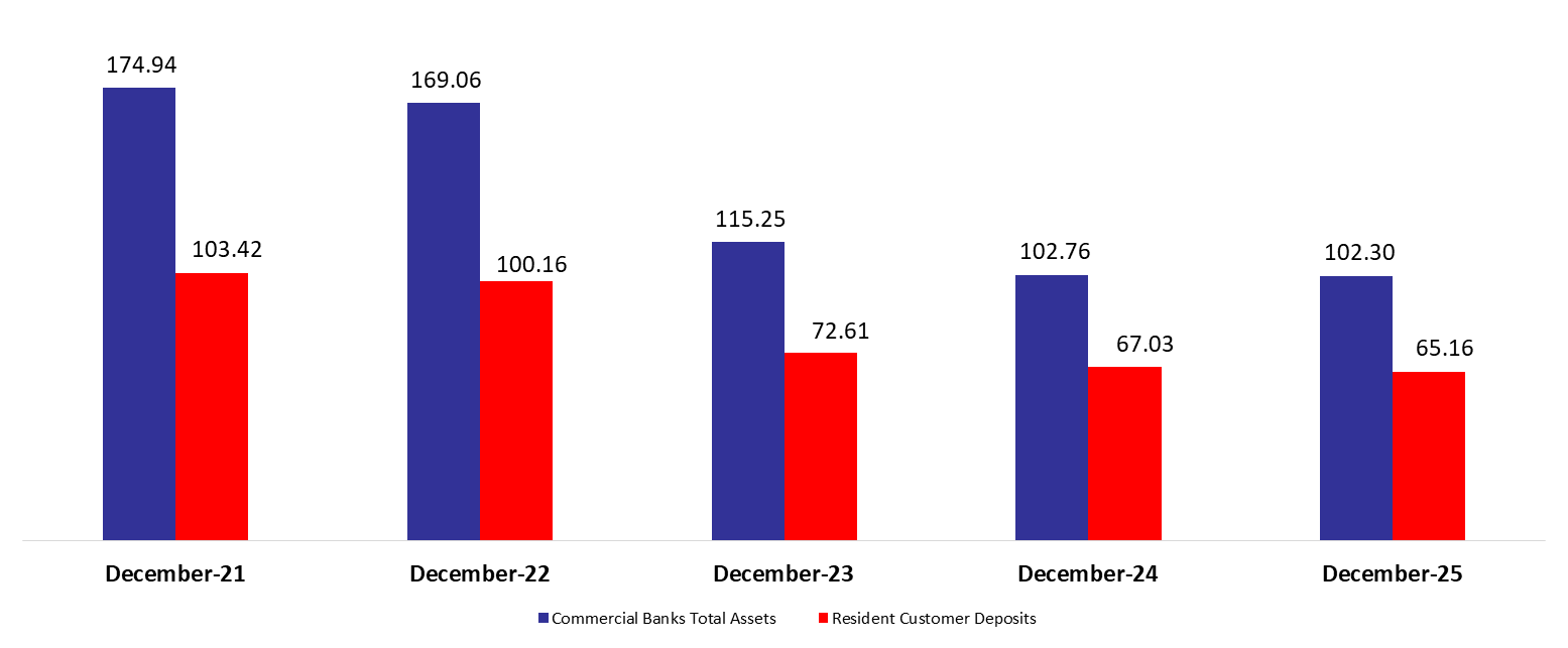 Commercial Banks Assets Down to $102.3B by December 2025