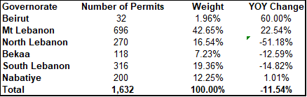 Moreover, construction activity increased across several governorates except for North Lebanon, Bekaa, and South Lebanon, where activity remained subdued.