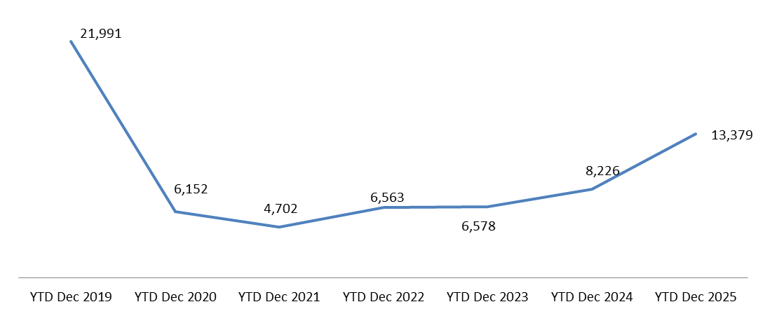 Year to Date (YTD) Growth of Registered Passenger Cars up to December (2019-2025)