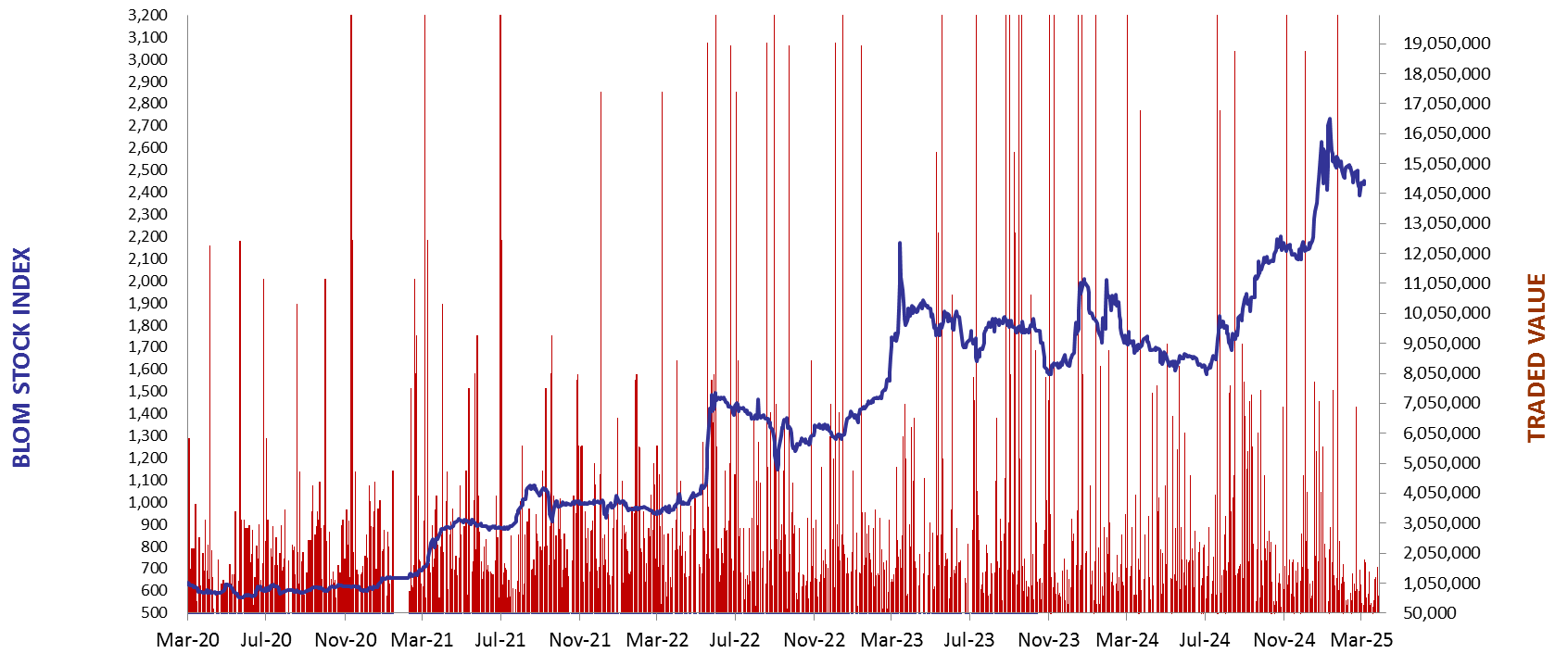 On March 16, 2025, the BLOM Bond Index (BBI) was recalibrated to exclude the bond maturing on March 23, 2027.