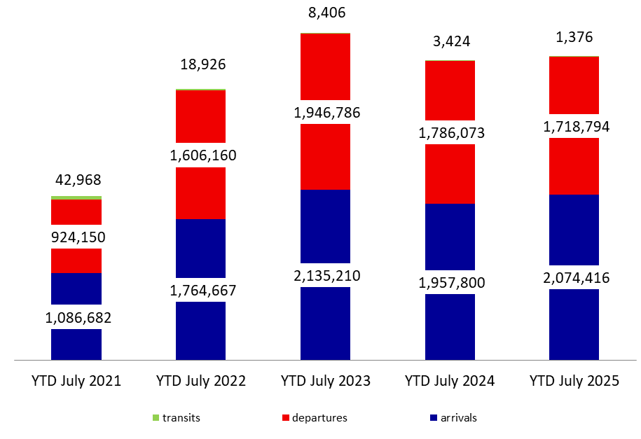 Beirut’s Rafic Hariri International Airport YTD Activity by July 2025: