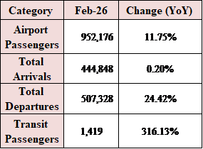 Number of Airport Passengers Up 11.75% Annually YTD by February 2026