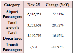 Number of Airport Passengers Up 22.41% Annually YTD by November 2025