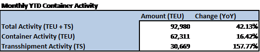 On a monthly basis the total activity increased by 42.13% to 92,980 TEU compared to October 2024, mainly driven by the end of war escalation, given that in October 2024 Lebanon was in a middle of an aggressive war which led to higher insurance and shipping premiums and safety concerns, thus reduced shipments to Port of Beirut.